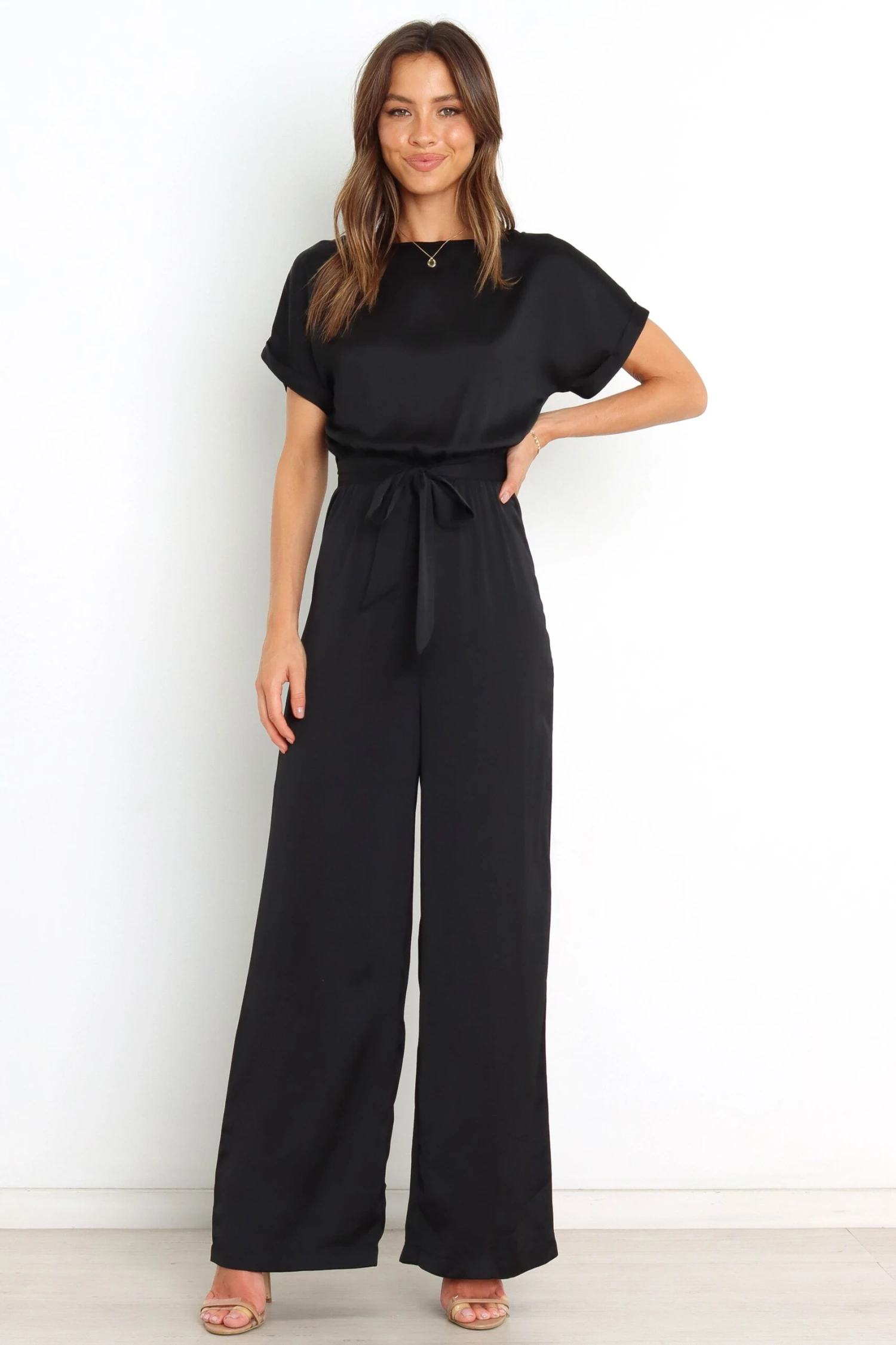 | DETAILS Add a touch of sophistication to your wardrobe with this stunning wide leg jumpsuit! This stylish piece features a round neckline, short sleeves and a back keyhole with button closure. There’s also an invisible back zip for easy on/off dressing plus belt loops with a detachable waist tie.