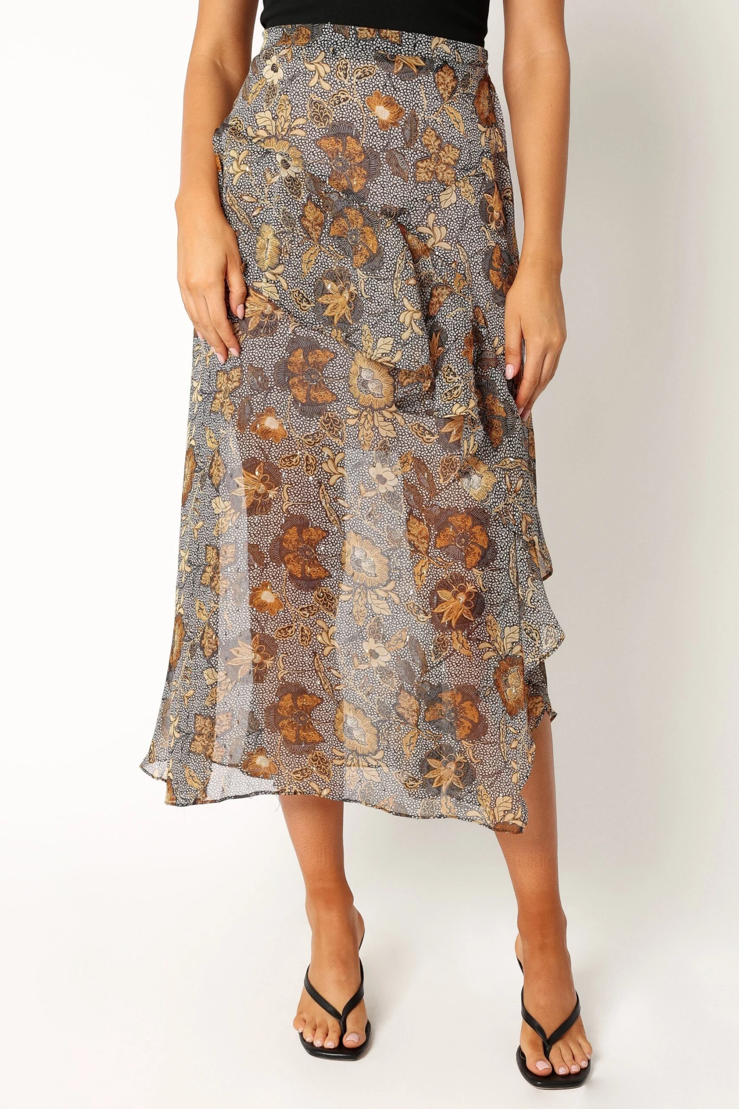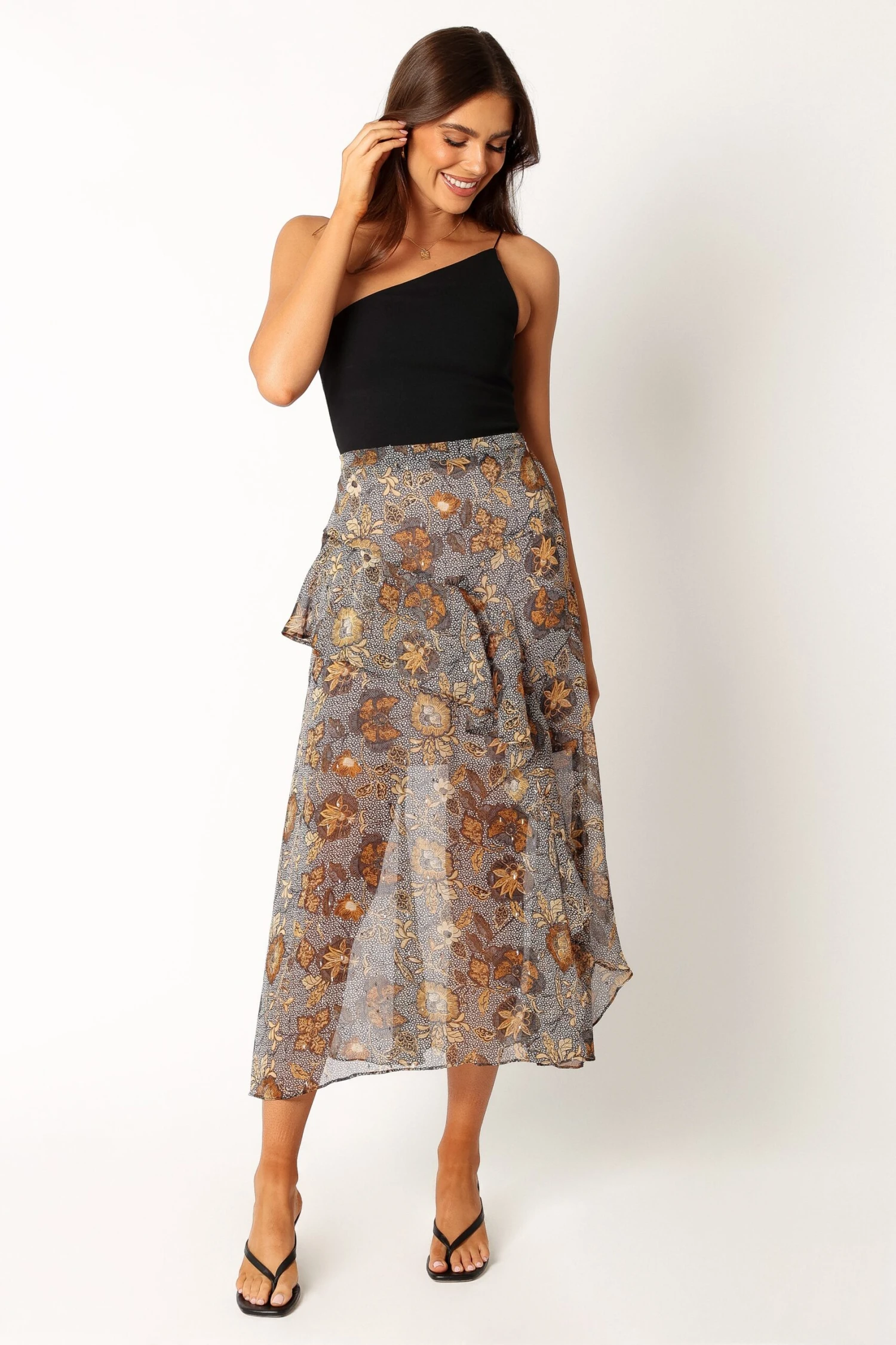 | DETAILS Introducing the new must-have in your wardrobe: a midi skirt with an asymmetrical ruffle overlay feature. This trendy piece boasts a back invisible zip with hook and eye clasp, as well as a back split for extra movement.