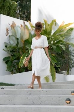 | DETAILS For instant fashion perfection, the wide leg style jumpsuit is a fail-safe option. With a timeless square neckline, adjustable tie straps and shirred bodice you’ll have chicness that can’t be beaten. Whether it’s brunch with friends or date night, this feminine jumpsuit will take your look to new heights.Â