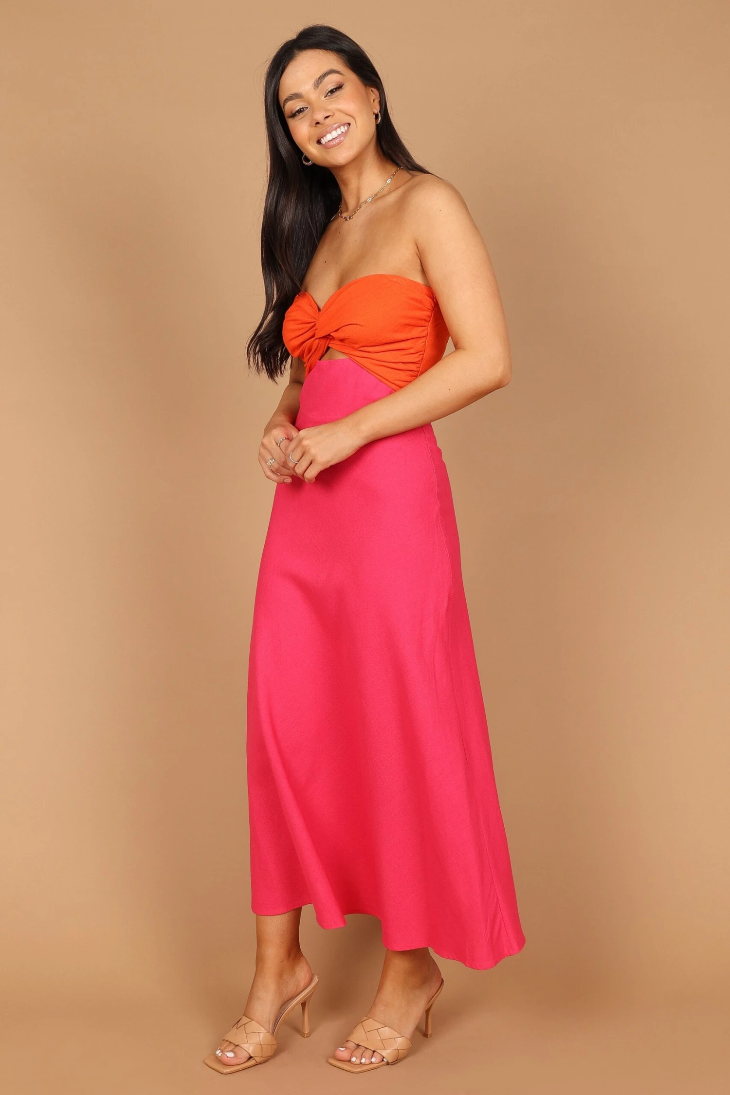 | DETAILS Our Rosetta maxi length dress is perfect for your next party. Boasting a strapless sweetheart neckline and curve-hugging fit, it’s sure to make you look amazing. There’s also a twist knot detail on the bust and a cut out feature under the bust for added style points.