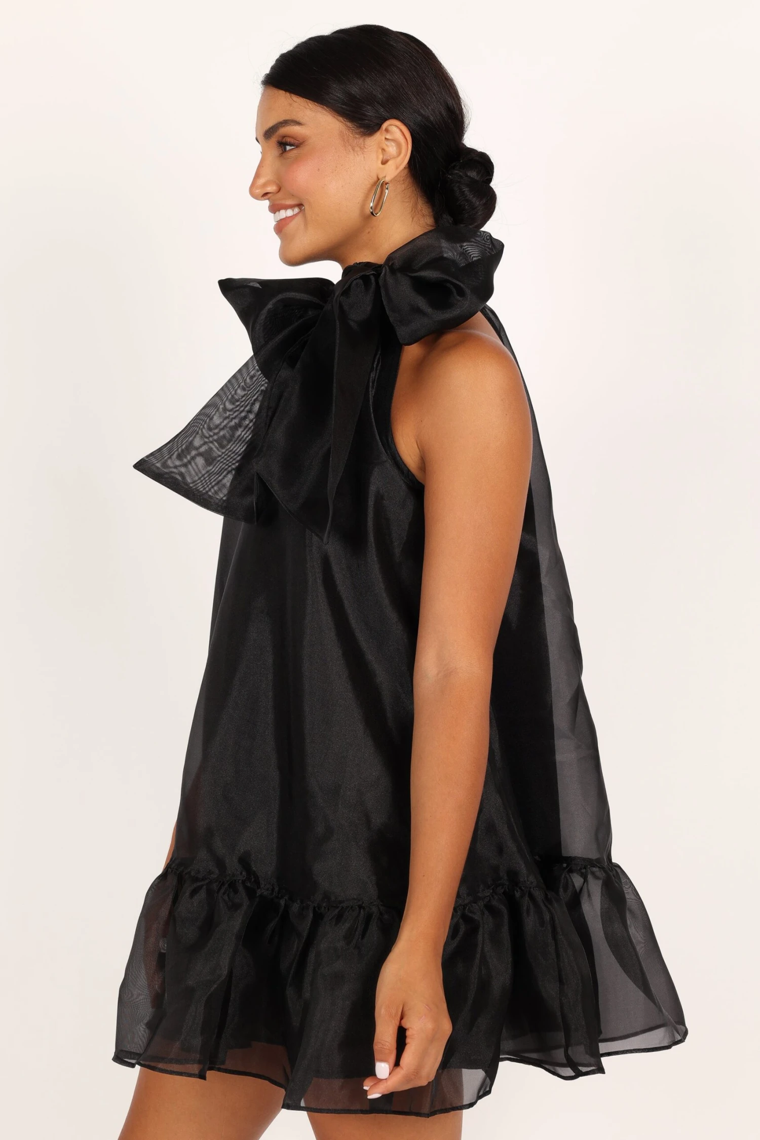 | DETAILS Are you ready to dress for the party? Make a statement in this stunning mini high neck dress with bow! This dress is sure to turn heads featuring a back neck opening with button close, making it easy and secure to wear.